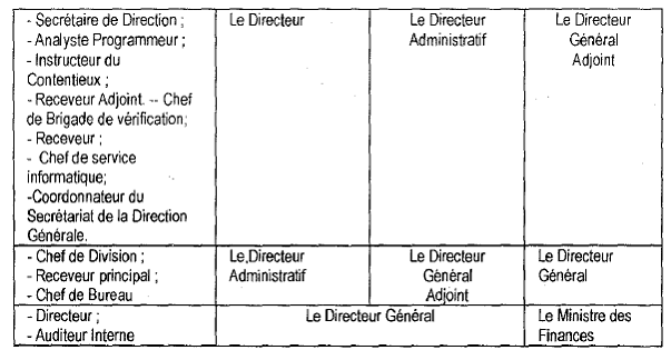 La mutation est décidée par le Ministre ayant les Finances dans ses attributions sur proposition du Directeur Général en ce qui concerne les emplois de commandement et par le Directeur Général sur proposition du Directeur Administratif pour ce qui est des emplois de collaboration et d'exécution.