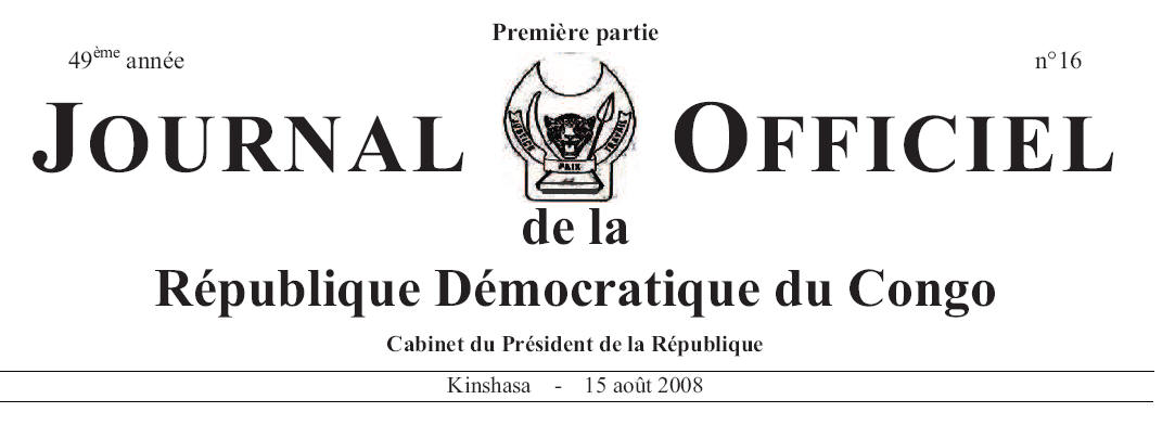 23 juin 2008 - Arrêté ministériel n° CAB.MIN/FP/ CJ/050/2008 portant création de la commission chargée de traitement et de la liquidation du contentieux en rapport avec la paie des agents et fonctionnaires des services publics de l'Etat, col. 69.