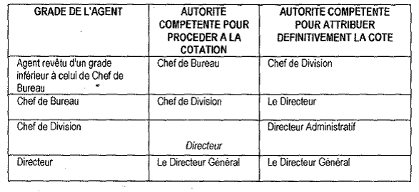 La cotation est obligatoire pour tous les agents soumis au présent Règlement d'Administration. Elle a pour objet d'éclairer l'administration sur l'intégrité, le sens social, la conscience professionnelle et la compétence de l'agent.