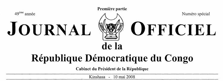 SOMMAIRE PRESIDENCE DE LA REPUBLIQUE 30 avril 2008 - Ordonnance n° 08/040 portant fixation du salaire minimum interprofessionnel garanti, des allocations familiales minima et de la contre-valeur du logement, col. 1. 07 mai 2008 - Ordonnance n? 08/041 portant nomination du Gouverneur de la Banque Centrale du Congo, col. 5. 07 mai 2008 - Ordonnance n° 08/042 portant nomination des Administrateurs Délégués Généraux et des Administrateurs Directeurs Techniques des entreprises publiques dénommées Office National des Transports «ONATRA» et Société Nationale des Chemins de Fer du Congo «SNCC», col. 5. GOUVERNEMENT Cabinet du Premier Ministre 08 avril 2008 - Décret n° 08/08 fixant la procédure de classement et de déclassement des forêts, col. 7. 08 avril 2008 - Décret n° 08/09 fixant la procédure d'attribution des concessions forestières, col. 13.