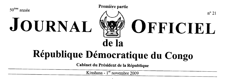 26 avril 1991 - Ordonnance n° 91-149 accordant la personnalité civile à l'association sans but lucratif « Centre d'Entraide Chrétienne », col. 5. 20 octobre 2009 - Ordonnance n° 09/095 portant nomination d'un Administrateur Directeur Général de l'Entreprise publique dénommée Office National des Transports, en sigle « ONATRA », col. 6. GOUVERNEMENT Ministère de la Justice, 25 juin 2009 - Arrêté ministériel n° 53/CAB/MIN/J/2009 accordant la personnalité juridique à l'association sans but lucratif non confessionnelle dénommée " Salaam/ONGD "., col. 7. 25 juin 2009 - Arrêté ministériel n° 56/CAB/MIN/J/2009 accordant la personnalité juridique à l'association sans but lucratif non confessionnelle dénommée « Association Locale pour le Développement Intégral » en sigle « A.L.D.I. », col. 8. 03 juillet 2009 - Arrêté ministériel n° 70/CAB/MIN/J/2009 approuvant la nomination des personnes chargées de l'administration ou de la direction de l'association sans but lucratif dénommée « Mission des Oblates du Sacré Coeur », col. 9. 03 juillet 2009 - Arrêté ministériel n° 71/CAB/MIN/J/2009 accordant la personnalité juridique à l'association sans but lucratif dénommée « Congrégation des Fils de l'Immaculée Conception », col. 10. 03 juillet 2009 - Arrêté ministériel n° 73/CAB/MIN/J/2009 accordant la personnalité juridique à l'association sans but lucratif dénommée « Congrégation des Ecoles de Charité Institut Cavanis », col. 11. 14 juillet 2009 - Arrêté ministériel n° 118/CAB/MIN/J/2009 accordant la personnalité juridique à l'association sans but lucratif non confessionnelle dénommée « Fondation Wanzila Pitshou » en sigle « FO.WA.PI », col. 12. 25 juillet 2009 - Arrêté ministériel n° 135/CAB/MIN/J/2009 accordant la personnalité juridique à l'association sans but lucratif dénommée « Assemblée Chrétienne d'Evangélisation et de Prière » en sigle « ACEP », col. 13. 25 juillet 2009 - Arrêté ministériel n° 136/CAB/MIN/J/2009 accordant la personnalité juridique à l'association sans but lucratif non confessionnelle dénommée « Association de Développement des Paysans d'Ipamu » en sigle « A.D.E.P.I. », col. 14. 26 septembre 2009 - Arrêté ministériel n° 178/CAB/J/2009 approuvant la nomination d'un Représentant légal intérimaire de l'association sans but lucratif confessionnelle dénommée : « 30ème ECC/Communauté Pentecôtiste au Congo, en sigle « 30ème ECC/Congo », col. 16. 05 octobre 2009 - Arrêté ministériel n° 180/CAB/MIN/J/2009 approuvant la nomination des personnes chargées de l'administration ou de la direction de l'association sans but lucratif dénommée « Communauté des Eglises Baptistes du Congo Est » en sigle « 55ème E.C.C. /C.E.B.C.E. », col. 17. Ministère des Affaires Foncières, 04 mars 2009 - Arrêté ministériel n° 029/CAB/MIN/AFF.FONC/ 2009 portant création d'une parcelle de terre n° 4668 à usage agricole du plan cadastral de la Commune de Maluku Groupement Mwana-Mputu, Quartier Kinzono à Kinshasa, col. 19. 28 juillet 2009 - Arrêté ministériel n° 084/CAB/MIN/AFF. FONC/2009 portant création d'une parcelle de terre n° 4554 à usage agricole du plan cadastral de la Commune de N'Sele à Kinshasa, col. 20. 08 septembre 2009 - Arrêté ministériel n° 109/CAB/MIN/AFF. FONC/2009 portant création d'un lotissement dénommé « Cité du Fleuve » dans la Commune de Limete, Ville de Kinshasa, col. 21. 15 septembre 2009 - Arrêté ministériel n° 112/CAB/MIN/AFF. FONC/2009 portant création d'une parcelle de terre n° 51.027 à usage agricole du plan cadastral de la Commune de Mont-Ngafula, ville de Kinshasa, col. 22. 05 octobre 2009 - Arrêté ministériel n° 117/CAB/MIN/AFF. FONC/2009 portant création d'une parcelle de terre n° 41117 à usage agricole du plan cadastral de la Commune de Mont-Ngafula à Kinshasa, col. 23. 05 octobre 2009 - Arrêté ministériel n° 118/CAB/MIN/AFF. FONC/2009 portant création d'une parcelle de terre n° 48455 à usage agricole du plan cadastral de la Commune de Mont-Ngafula' à Kinshasa, col. 24. 10 octobre 2009 - Arrêté ministériel n° 119/CAB/MIN/AFF. FONC/2009 portant annulation de l'Arrêté ministériel n° 097/CAB/MIN/AFF.FONC/2005 du 22 octobre 2005 portant annulation de l'Arrêté départemental n° 11/RCD/CAB/DTME/ 2001 du 06 février 2001 portant résiliation du contrat d'emphytéose n° D8/E.193 du 11 juillet 1981, col. 25. COURS ET TRIBUNAUX R.A. 1052/Bis - Publication de l'extrait d'une requête en annulation - Monsieur Lokoloto Nkanga Jean, col. 26. R.A. 1061 - Publication de l'extrait d'une requête en annulation - La société VODACOM, col. 26. R.A. 1062 - Publication de l'extrait d'une requête en annulation - La société CELTEL, col. 27. R.A. 1063 - Publication de l'extrait d'une requête en annulation - Compagnie forrestière de l'Equateur, col. 27. R.A. 1064 - Publication de l'extrait d'une requête en annulation - Docteur Ali Rissasi, col. 27. RA. 1065 - Publication de l'extrait d'une requête en annulation - GEMOTECH Sprl, col. 28. R.A. 1069 - Publication de l'extrait d'une requête en annulation - MILLETIA Sprl, col. 28. RP/130 - Citation à prévenu à domicile inconnu par affichage et publication au Journal officiel - Monsieur Nyembo Lutunga Etienne, col. 29. RP/130 - Citation à prévenu à domicile inconnu par affichage et publication au Journal officiel - Monsieur Katalayi Manyeka Crispin, col. 29. Notification d'Ordonnance - Monsieur le notaire de la Ville de Kinshasa et Crts, col. 30. Notification d'Ordonnance - Monsieur le notaire de la Ville de Kinshasa et Crts, col. 31. Notification d'Ordonnance - Monsieur le notaire de la Ville de Kinshasa et Crts, col. 32. RC 4771 - Acte de signification du jugement par extrait - Monsieur Dabola Kikudi Minga Roger, col. 33. RP. 7329/XI - Citation directe - Monsieur Batondambo Norbert et Crt, col. 34. R.P. 20.741 - Citation directe - Monsieur Alain Motshumb